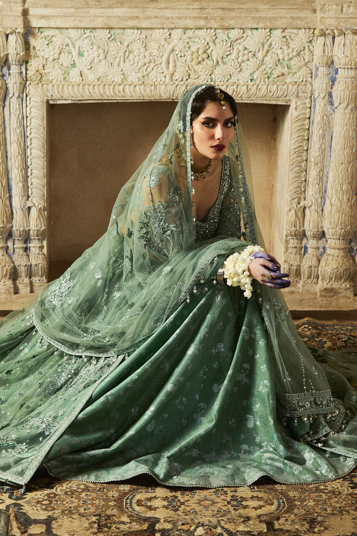 - Front-open embroidered net peshwas with detailed choli and sleeves
