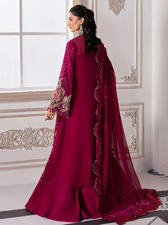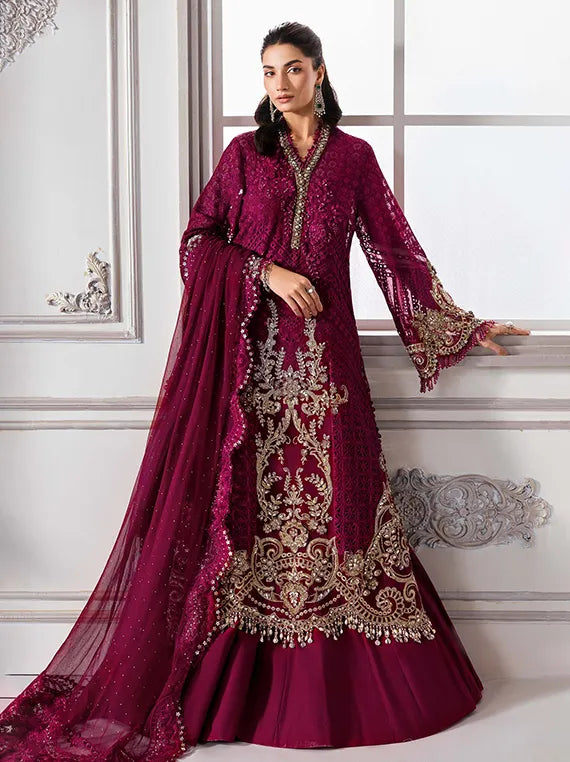 Embroidered Chiffon Center Panel With 3D Flowers & Luxury Hand Embellishment