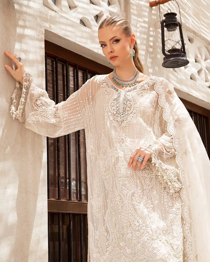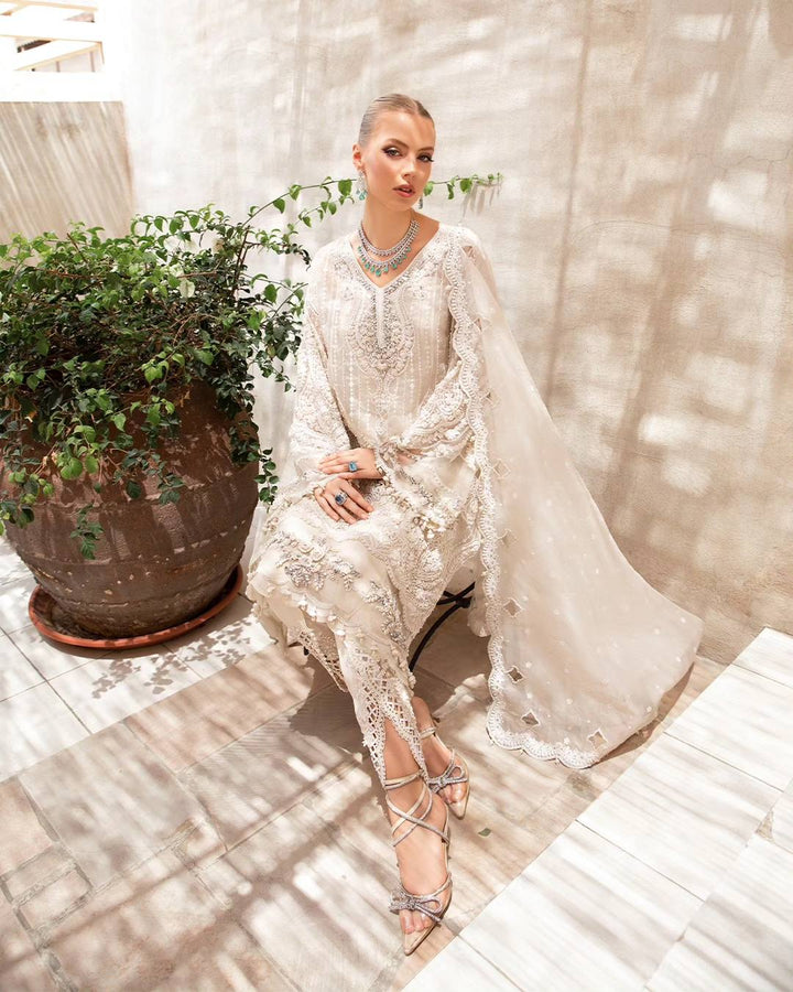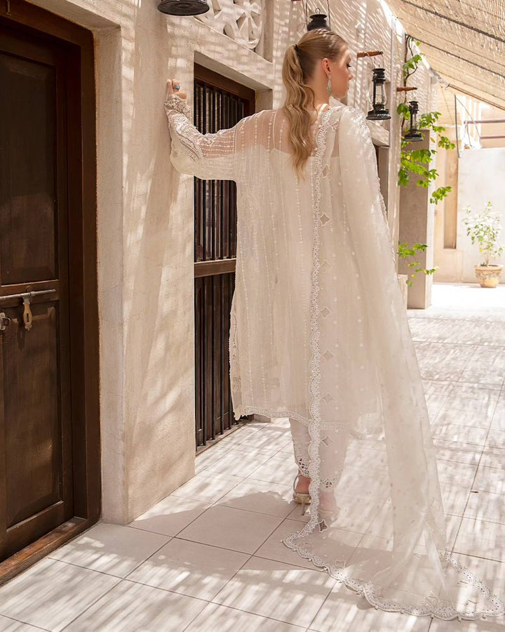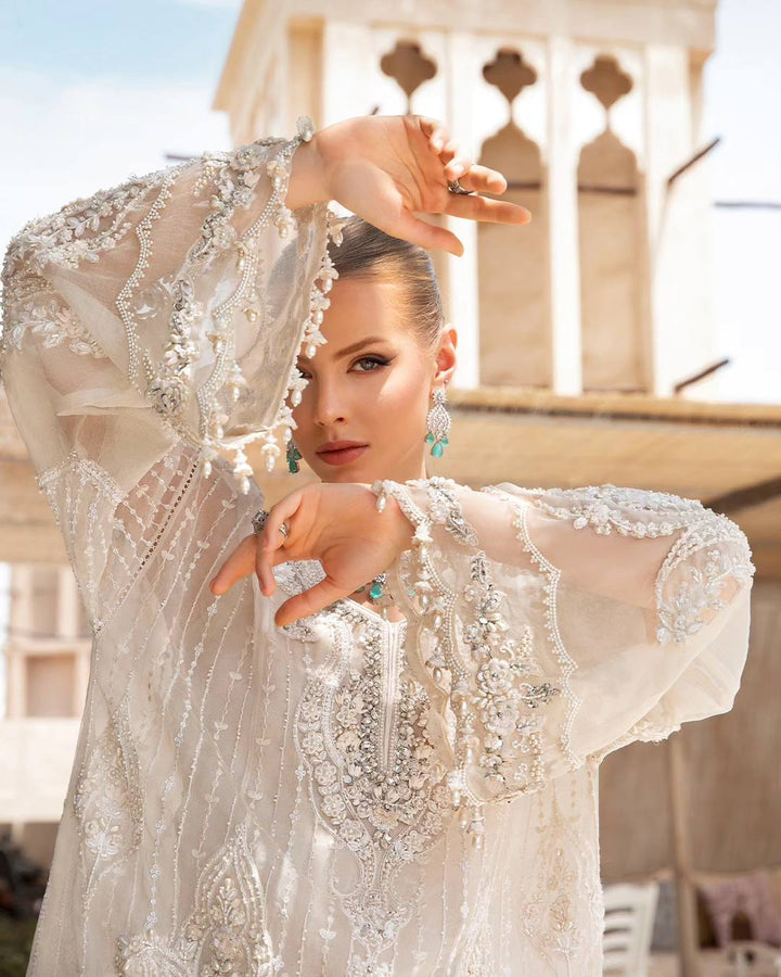 Our modern Kurta Set 'PEARLA' is expressed in motifs inspired by lush tropics & elevated with timeless 3D floral work, mesmerizing stones, dabka naqshi & pearl embroidery making it perfect for modern celebrations & celebratory soirees.